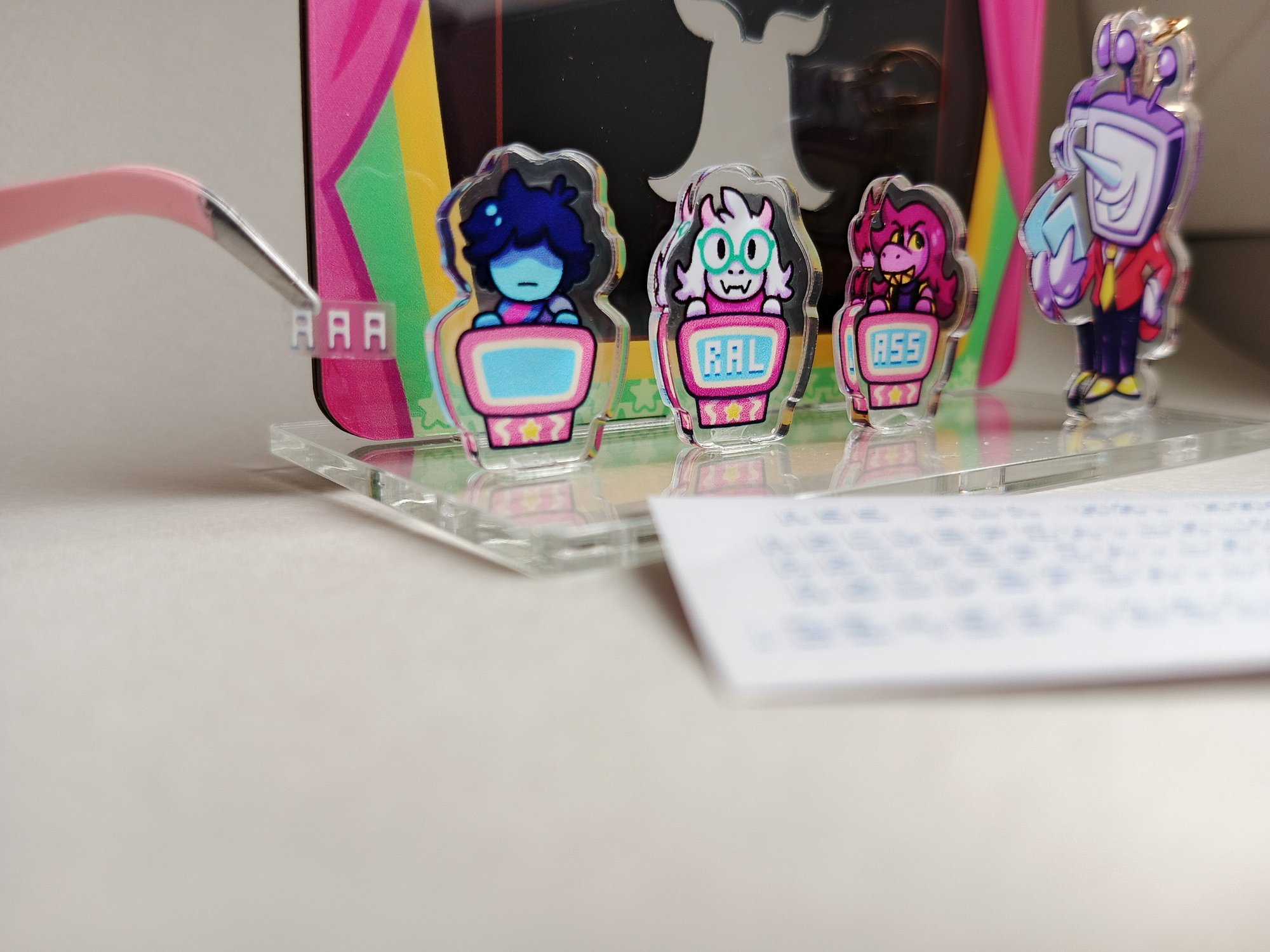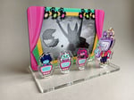 - Includes 6 parts (3 Characters-standees, 1 Character-charm, 1 cardholder-background, base)