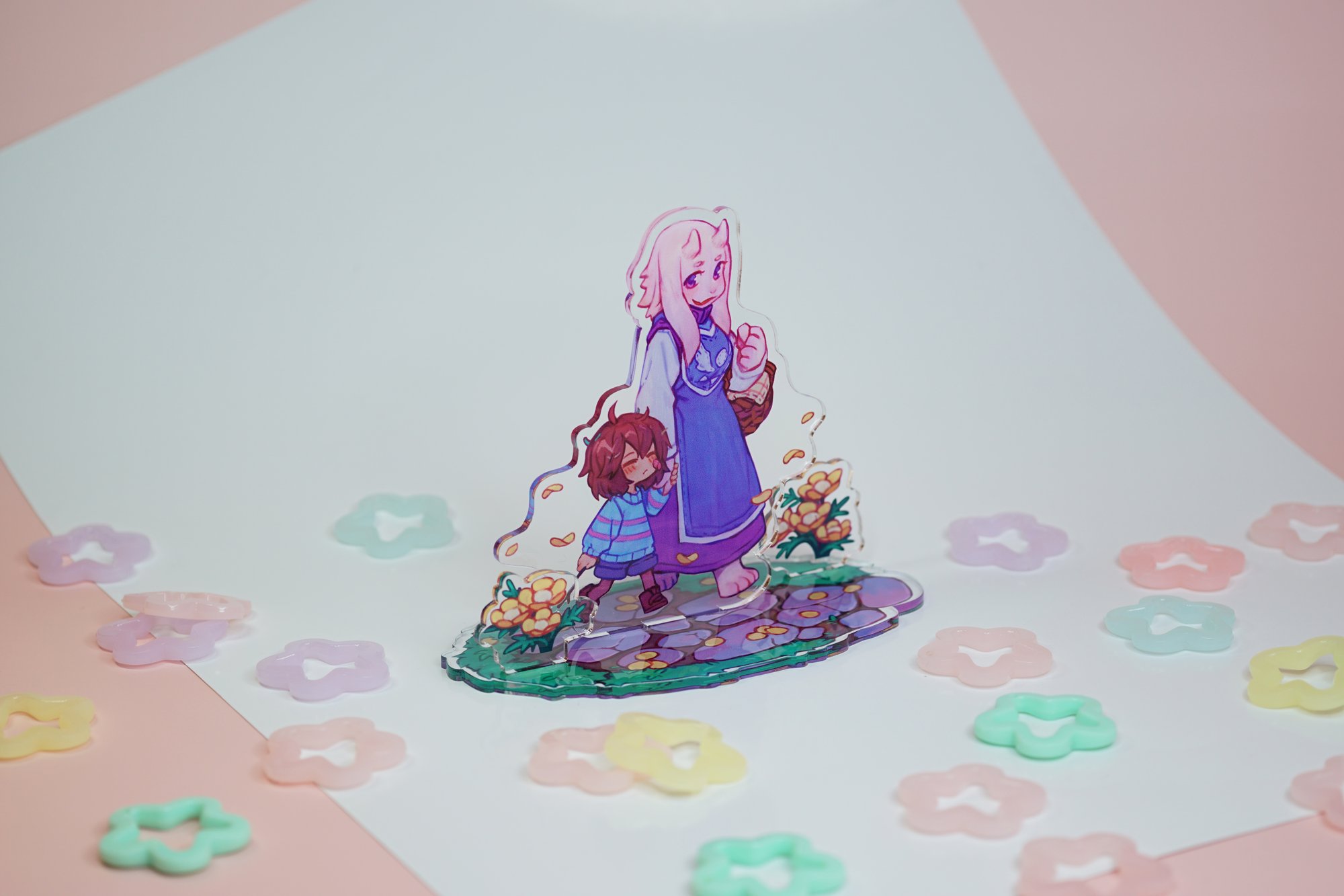 - 3,9" (10cm) acrylic standee - Double sided, one-layered acryl - Includes 4 part (Characters, 2 bouquets, base)